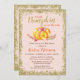 Convite de Chás de Bebê de Outono com Purpurina Dourada Pequena Abóbora Rosada.