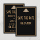 Pequenos cartões planos de Save the Date de casamento Art Deco dourado e preto Great Gatsby (8,89 cm por 12,7 cm) com texto personalizável