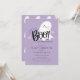 Este adorável convite apresenta fantasmas bonitos colocados num fundo roxo. As palavras "Um Pequeno Boo Bonito Está Quase Vindo" são escritas em letra divertida e festiva. É a maneira perfeita de anunciar a chegada do seu pequeno e deixar seus convidados saberem que estão em uma celebração macabra. Certamente será um sucesso para todos que o receberem.