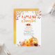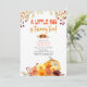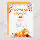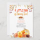 Um Pequeno Boo está fazendo dois - perfeito para o outono, estação de abóbora e ação de graças. Design de aquarelas com folhas de outono, flores e abóbora em cores vivas. O convite apresenta uma tipografia peculiar e uma lavagem com aquarela nas costas.