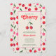Estes convites serão a cereja no topo da sua chá de fraldas para celebrar um futuro para ser mãe e bebê. Perfeito para um chá de fraldas de verão, estes convites apresentam uma ilustração adorável de cereja retrô em vermelho e pinks em um fundo colorido de creme.
