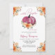 Pequeno Pumpkin no Caminho Caindo Convite para Chá de fraldas com abóbora e florais laranja, bege e burgundy. Perfeito para chás de fraldas de outono. Celebre a abóbora que está chegando em breve.