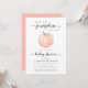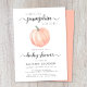 Um belo convite para chás de fraldas, neutro em termos de gênero, com "A Sweet Little Pumpkin Is On Your Way" escrito numa mistura de tipografia de cinzas e roteiro de na moda com pântanos, e uma aquarela de laranja pastel de uma abóbora. Personalize o nome da mãe e os detalhes do chá em uma simples tipografia moderna. Especificar o sexo do bebê, se desejado (por exemplo, "está a caminho").