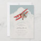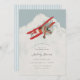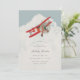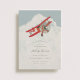 Prepare-se para voar com este convite de chá de fraldas de estilo vintage! Contra um fundo azul claro, um adorável avião vermelho voa acima das nuvens. Com o seu encantador estilo desenhado à mão, este pequeno avião certamente capturará os corações dos seus hóspedes e dará o tom para um chá de fraldas divertido e aventureiro. O esquema de cores é macio e branco, com tons de azul, vermelho e creme adicionados ao encanto geral do design. Com sua ilustração divertida e design inspirada em vintage, este convite para chás de fraldas certamente agradará seus convidados e os preparará para decolar. Então, aperte-se e prepare-se para celebrar a chegada do seu pequeno em estilo!