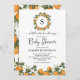 Este convite de tendências irá certamente iluminar o seu chá de fraldas. A design apresenta laranjas pintadas à mão lindas e verde-azul. Use os campos de texto para personalizar o convite com seu próprio texto e detalhes. A cor de fundo do convite está definida como branca, mas sinta-se livre para escolher uma nova cor de preenchimento para corresponder ao tema do seu chá. Se quiser alterar o estilo da fonte, a cor ou o posicionamento do texto, basta clicar no botão "Personalizar Mais".