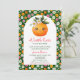 Bem-vindos à sua pequena com uma explosão de encanto fresco! Este adorável Chá de fraldas Citrus & Daisies Laranja Invitation apresenta cor de água adorável laranja, margaridas alegres e verde macio para um design brilhante e caprichoso. Perfeito para comemorações de primavera ou verão, traz um toque divertido, mas elegante, ao seu dia especial. Personalize facilmente com seus detalhes para criar um convite personalizado que amigos e familiares irão amar.