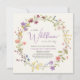 Um convite elegante para uma menina de creme claro, com "uma pequena flor selvagem está a caminho", escrito numa mistura de tipografia moderna de cinzas moles e uma escrita de lavanda na moda e uma coroa inspirada em ventre de aquarelas roxas, cor-de-rosa, pêssego e amarelas. Personalize o nome da mãe e os detalhes do chá em lavanda simples e tipografia de cinza.