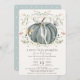 Este elegante e romântico convite para o chá de fraldas de "uma doce abóbora" apresenta uma abóbora azul com um arco/fita branco cercado por borboletas e flores silvestres. O verso apresenta um fundo azul claro empoeirado com padrões brancos de bolinhas. Personalize-o para as suas necessidades. Você pode encontrar produtos correspondentes na minha loja.