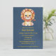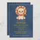 Celebre seu filhote no caminho com este adorável convite para chás de fraldas! Apresentando um leão-bebê de aquarela doce sentado em frente a um quadro azul rústico, emoldurado com listras lúdicas, esta design é perfeita para um chá de fraldas-menino. A combinação de arte macia e sotaques azuis ousados cria um tema divertido, mas charmoso, que seus hóspedes irão adorar. Personalize com os detalhes do seu partido para torná-lo exclusivamente seu!