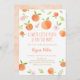 Este adorável convite apresenta pêssegos pintados à mão, flores e verde.