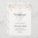 Uma ilustração encantadora de aquarela com minúsculas flores silvestres em um estilo bonito e adorável decora este convite de chá para menina que é perfeito para uma celebração de primavera ou verão. As flores cor-de-rosa e azul-lacre entrelaçam-se com o verde, para um suave e doce convite para celebrar a chegada da sua pequena flor selvagem no caminho.