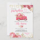 Um Pequeno Pumpkin está a caminho! Celebre a chegada da sua abóbora com este convite de chá de fraldas temático de abóbora! Este design apresenta abóboras de aquarela, flores e um caminhão com falsa brilho dourado! O tema perfeito para o seu chá!
