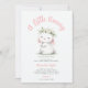 Uma ilustração encantadora de aquarela com um coelho precioso vestindo uma camada estilizada de flores silvestres decora este delicado convite para chá de menina que é um ajustado perfeito para uma celebração na primavera, eventos de Páscoa, um fête no jardim de verão ou um encantador chá de fraldas de piquenique.