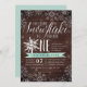 Brrr! Convites chiques para comemorações do primeiro aniversário do inverno exibem uma borda branca com flocos de neve em um fundo rústico de prancha de madeira com sotaques verdes de menta gelada. "Nosso floco de neve está girando um" aparece no topo em letras de escrita de caligrafia branca, com um floco de neve posicionado para a letra "O". Personalize com seus primeiros detalhes de festa de aniversário abaixo usando os campos modelo.