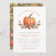 Crie os seus próprios convites para bebês de pequeno gênero de abóbora neutra de queda usando estas modelos usando o Stonking Stuff. Esta design de outono apresenta uma abóbora cor de água laranja com uma coroa de folhas de outono e uma tipografia moderna. Ao contrário, há um padrão de queda que corresponde à coroa e à abóbora.
