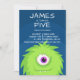 Um convite de aniversário de monstrinhos peludos fofo. Verde limão brilhante e azul.