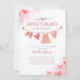 O Chá de fraldas das Meninas Sweetheart Invitation apresenta a palavra "querida" em uma fonte moderna, em tons de vermelho, com uma borda cardíaca de corações de cor-d-água vermelha e rosa. Personalize o convite para o chá de fraldas do Dia de os namorados com o nome da mãe e os detalhes do chá.