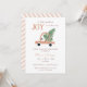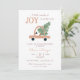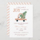 Este convite para o chá de fraldas é adorado com um doce carregando de carro desenhado à mão, uma alegre árvore de Natal, criando um tema festivo e animador para celebrar a chegada de uma menina durante o feriado.