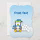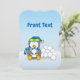 Um pequeno desenho animado de pinguim sentado segurando uma bola de neve.