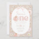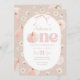 Uma abóbora fofa! Abóbora Floral e arco Chamada de primeiro aniversario da menina com fundo neutro com margaridas, abóbora e arco rosa fofo.