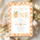 Um Pequeno Convite De primeiro aniversario De Citros Laranja Cutie. Celebre o primeiro marco do seu filho com o nosso pequeno Convite para primeiros aniversarios de citrinos de laranja! Este doce design com uma fruta laranja encantadora com um arco é perfeito para a sua celebração de primeiro aniversário de verão. Peça agora! Acessórios correspondentes disponíveis.