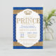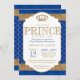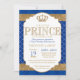 Dourado brilho, azul real. Bem-vindo a um pequeno príncipe ou comemorar o seu aniversário com este convite real querido.