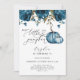 Cartão de convite de aniversário do menino da queda, bonito, com ilustração aquosa de abóboras azuis com flores. O texto diz "nossa abóbora XX está virando X."
