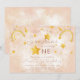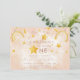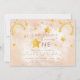 Convite de primeiro aniversário boêmio em rosa suave, poeira mágica e estrelas douradas brilhantes. Clique no botão "personalizar mais" se desejar reorganizar e formatar o estilo e a posição do texto.