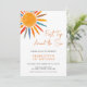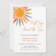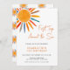 Está planejando a primeira festa de aniversário de uma garota? Este belo convite é decorado com uma cor d'água brilhante e diz "Primeira viagem ao redor do Sol" na tipografia da na moda. Há um padrão de sol nas costas. Facilmente personalizável. Original Watercolor © Michele Davies.