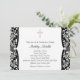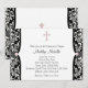 Convite Pérola Cruz Rosa Preto Damasco Batizado
