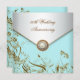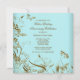 Convite Pérola Flor Dourada Turquesa Aniversário de 50 Ano