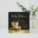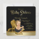 Convite de chá de bebê elegante em preto e dourado com sapato de salto alto e doce bebê menina com tutu preto franzido e colar de pérolas em um lindo fundo preto e dourado. Este adorável convite de chá de bebê em preto e dourado é facilmente personalizado para o seu evento, basta adicionar seus detalhes no estilo de letra de sua escolha. Você também pode alterar a cor do fundo. Este é um design impresso sem brilho, pérolas, jóias, etc. reais.