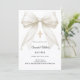 Celebre o Batismo ou Batizado do seu filho com este convite elegante de laço de cetim marfim, projetado com um laço de cetim atemporal adornado com pérolas delicadas e uma cruz dourada clássica.