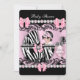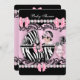 Convite Pérolas de zebra rosa-rosa, chá de fraldas-branca