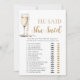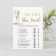 O "Pérolas Douradas e Prosecco Ele Disse, Ela Disse Jogo" é um acréscimo delicioso às festividades do chá de noiva. Com elegantes motivos de pérolas douradas e prosecco, este jogo adiciona um toque de sofisticação ao evento. Os convidados se divertirão adivinhando quem disse o quê enquanto compartilham anedotas e memórias, tornando a experiência divertida e memorável para todos.