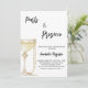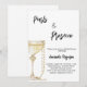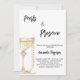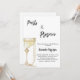Um convite moderno, na moda e glamouroso para um Chá de panela de Pérolas e Prosecco. Um fundo branco com um copo com bolhas e pérolas. O nome é escrito com um moderno estilo escrito à mão. Personalize e adicione os detalhes da sua festa.