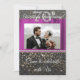 Convite Chic Black e Platinum com seda rosa fúcsia apresenta a fotografia do casal.