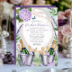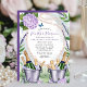 Convide seus convidados para uma celebração elegante com este convite de chá de panela "Pérolas e Prosecco", apresentando um design inspirado em jardins com flores lavandas suaves, folhagens exuberantes e uma sequência de pérolas emoldurando o texto. Baldes de gelo cheios de garrafas de champanhe adicionam um toque festivo, enquanto o fundo suave em aquarela cria uma atmosfera delicada e sofisticada. Perfeito para um chá de panela que combina elegância com celebração alegre.