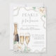 Convite de Chás de Noiva Pérolas & Prosecco. Este design elegante e divertido define o tom perfeito para uma celebração sofisticada. "Pérolas & Prosecco" é apresentado de forma proeminente no topo em uma mistura de tipografia cursiva e fontes serifadas, criando uma aparência sofisticada e ao mesmo tempo divertida.