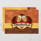Convite de festas Oktoberfest com o logotipo da etiqueta de cerveja de Mug duplo nas cores ricas do outono, de ouro âmbar, marrom e laranja. A caneca de cerveja alemã com bebida alcoólica espessa aguarda partidários sedentos. Personalize este Convite de festas exclusivo do Oktoberfest com seus detalhes personalizados de celebração de festa no verso.