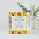 Crie o convite perfeito para sua ocasião especial com este Convite Personalizável apresentando um clássico padrão xadrez preto e três girassóis amarelos vibrantes. Personalize o convite para qualquer evento, seja um Chá de Noiva, Chá de Bebê, Festa de Aniversário ou outra Ocasão para Senhoras. Você pode facilmente adicionar seus detalhes e personalizá-lo para combinar com o estilo da sua festa. Disponível para download se preferir uma versão digital!