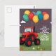 Convite Personalizado de Aniversário . Convites e Material de Escritório Convite de Aniversário com um Trator Vermelho Grande e balões. Coloque o nome dos seus filhos no cartão com todos os detalhes para os amigos dele se divertirem.