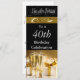 Seus hóspedes vão adorar este convite de festas personalizado de aniversário de 40 anos de ouro e preto com óculos de champanhe, presentes brancos com fita de ouro e bolhas minúsculas. Simples mas festivo, o elegante, chique, clássico, convite de festas clássico é uma maneira adequada de celebrar o seu quadragésimo aniversário de convidado de honra com um estilo tradicional com uma sugestão do estilo moderno e contemporâneo. Personalize facilmente este convite de festas aniversário de 40 anos preenchendo os modelos indicados. aniversário de 40 anos devem ser comemorados. Por que não ter certeza de enviar o convite de festas perfeito para aniversário de 40 anos, perfeito para homens ou mulheres, para seus convidados? Este é um convite de aniversário muito barato e é a escolha perfeita para o anfitrião ou anfitrião com consciência orçamental.