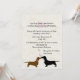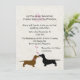 O convite de casamento para cães bonitos foi feito com gráficos de um fundo de marfim em apuros. Silhuetas bonitas de um dachshund marrom e preto, com corações cor-de-rosa entre eles decoram o fundo do convite. Todo o texto é personalizável para atender às suas necessidades de evento. Adorável convite para os amantes Doxie.