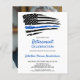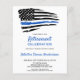 Convites de aposentadoria da polícia de linha azul fina. Celebre anos de serviço dedicado e convide amigos e familiares para a sua festa de aposentadoria na polícia com este Convite para aposentadoria da Polícia de Sinalizador Azul Thin. DESIGN americano na Polícia de Sinalizador, cores modernas, preto branco e design azul. Este convite para aposentadoria de policial também é perfeito para convites para formatura na academia de polícia, mudança de local na personalização. Estes cartões de convite à reforma da polícia orçamental são um alternativo de convites à reforma gratuitos da polícia. Veja nossa coleção para combinar presentes de aposentadoria da polícia, favoritos para festas de aposentadoria da polícia e suprimentos. COPYRIGHT © 2021 Judy Burrows, Black Dog Art - Todos Os Direitos Reservados. Convite Personalizado de Fotografia para Retirada de Polícia de Orçamento