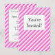 Um modelo de convite personalizado para chá de noiva ou baby shower com listras rosa e branco.