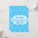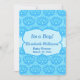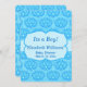 É um menino! Este convite na moda azul damask é excelente chá de fraldas menino. Sofisticado e espinhoso, este convite apresenta um damasco azul num fundo azul de turquesa em camadas. Um motivo azul claro se senta em uma faixa azul clara e fornece uma área para Personalizar. Personalize a parte traseira com a data, o local, o RSVP e as lojas registradas. O fundo no verso também é o design damask com o emblema em um tamanho maior para os detalhes e informações do chá. Totalmente personalizável para o seu chá. Esta cor damasco é a arte original de Phyllis Dobbs e coordena com outros produtos nesta loja.