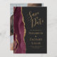 Este elegante e moderno salve a placa de data apresenta uma borda geode de cor d'água burgundy, aparada com falso brilho dourado. O texto dourado aparece sobre um fundo de cinza de carvão escuro. Substitua facilmente a imagem de amostra no lado oposto por uma foto vertical da futura noiva e noiva.