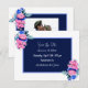 Casamento personalizado Salve as datas com bonito flores cor-de-água rosa e azuis com letra branca. Elegante tema do casamento floral. Adicionar foto do casal na área de personalização. s