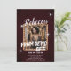 Este convite para envio de bailes de formatura oferece uma beleza encantadora e espumante com tons tintos de vinho, uma estrutura de cadeia de ouro, efeitos estelares e uma foto de retrato proeminente. A foto do retrato do receptor é colocada no centro, criando um destaque proeminente e atraente. As informações detalhadas sobre eventos são apresentadas claramente, ajudando os convidados a compreender facilmente o conteúdo.